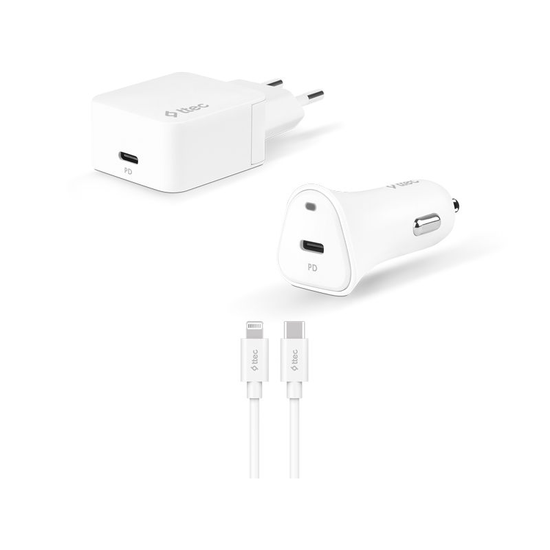 Punjač Travel ttec Quantum PD 20W + 20W auto punjač + Type-C/Lightning, MFi, iPhone